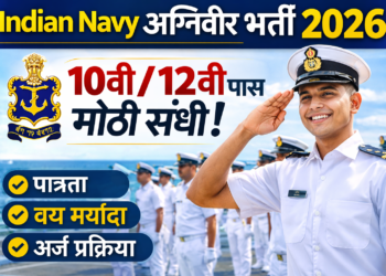 भारतीय नौदलामध्ये नोकरी करण्याची इच्छा असलेल्या तरुणांसाठी मोठी संधी उपलब्ध झाली आहे. Indian Navy Agniveer Bharti 2026 अंतर्गत Agniveer SSR ...