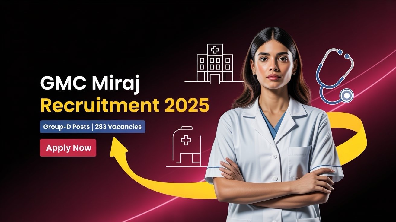 GMC Miraj Recruitment 2025 : महाराष्ट्रातील युवकांसाठी सरकारी नोकरी मिळवण्याची एक मोठी संधी! शासकीय वैद्यकीय महाविद्यालय, मिरज (Government Medical College – GMC Miraj) यांनी गट-ड (Group-D) पदांसाठी 263 जागांची भरती जाहीर केली आहे. स्थिर सरकारी नोकरी, आकर्षक वेतन आणि वैद्यकीय क्षेत्रातील प्रतिष्ठित संस्थेत काम करण्याची ही सुवर्णसंधी आहे. 10वी उत्तीर्ण उमेदवारांना या भरतीत सहभागी होण्याची संधी मिळणार आहे.