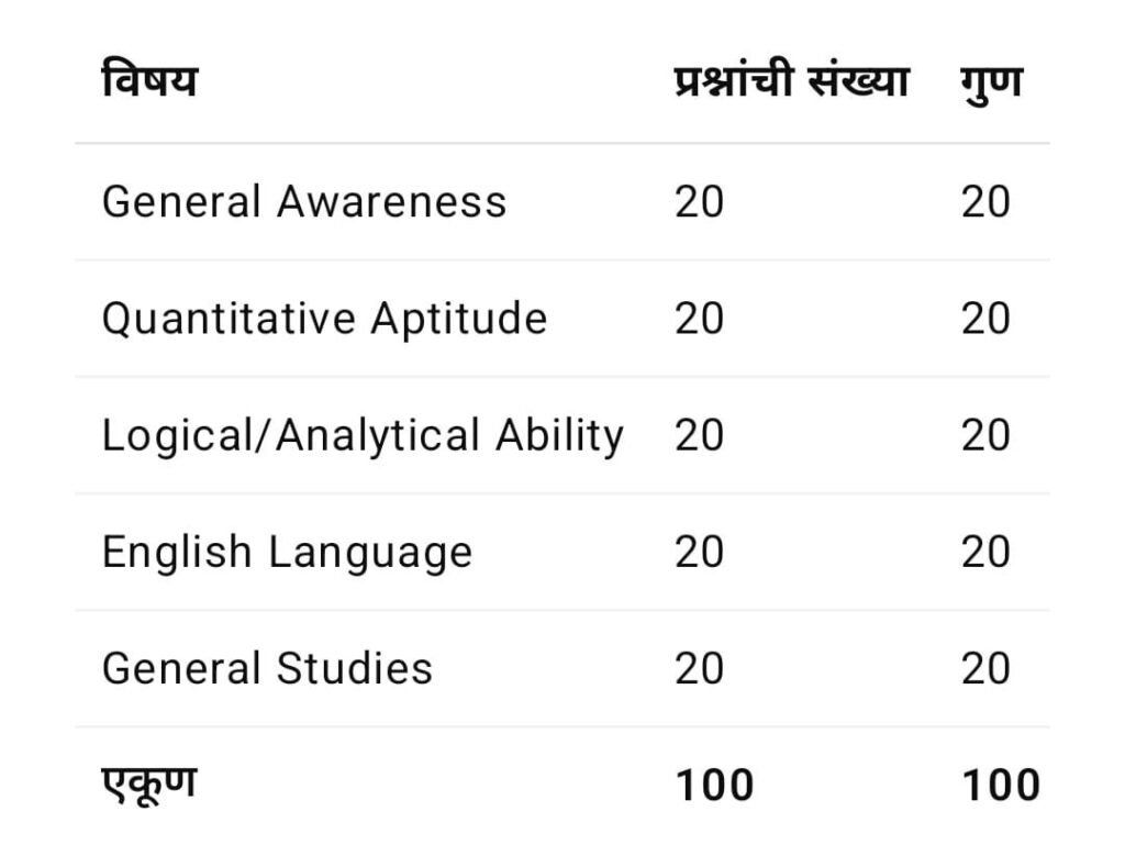 नकारात्मक गुण प्रणाली (Negative Marking) लागू आहे: प्रत्येक चुकीच्या उत्तरासाठी 0.25 गुण वजा.