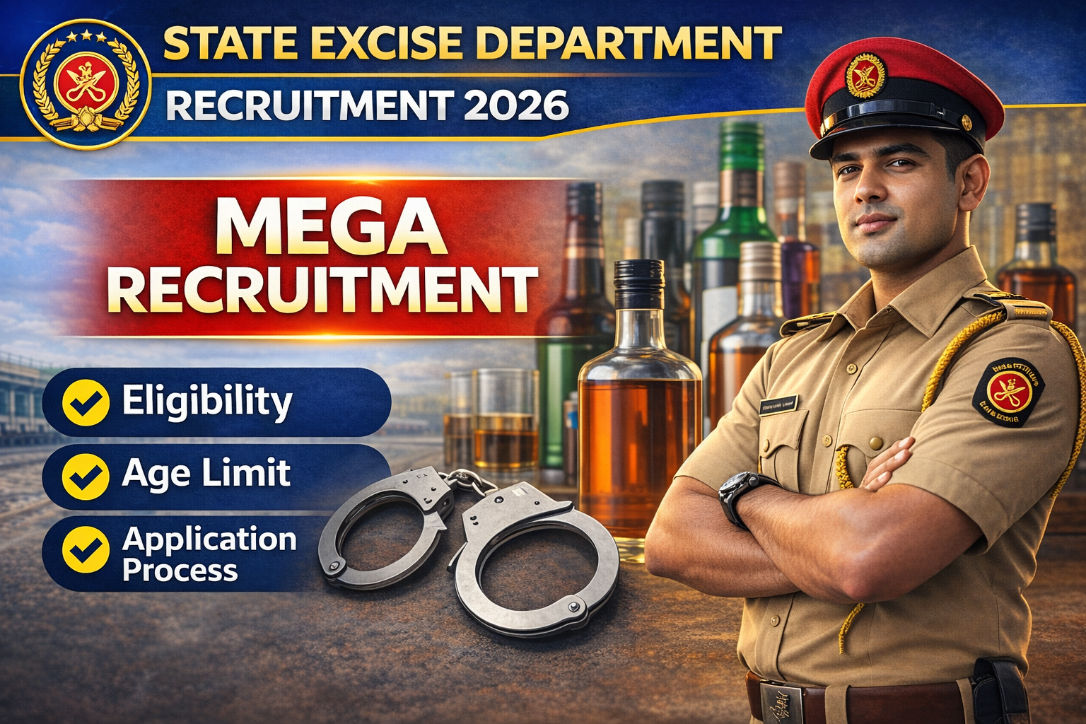 State Excise Department Bharti 2026 ही महाराष्ट्रातील तरुणांसाठी मोठी सरकारी नोकरीची संधी आहे. 10वी पास ते पदवीधर उमेदवार या भरतीसाठी पात्र असतील, त्यामुळे ही संधी सोडू नका..